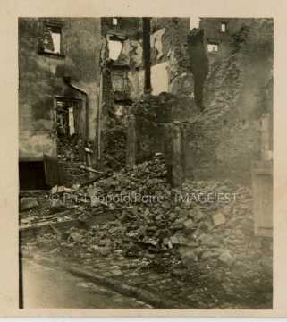 Villages en ruines durant la Première Guerre mondiale. En haut à gauche, des maisons ...