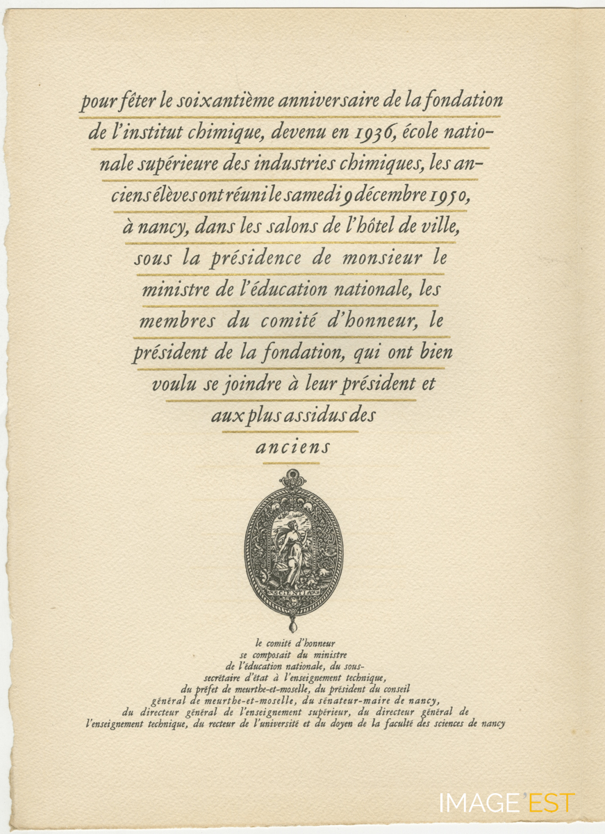 60e anniversaire de l'ICN-ENSIC 1890-1950 (Nancy)
