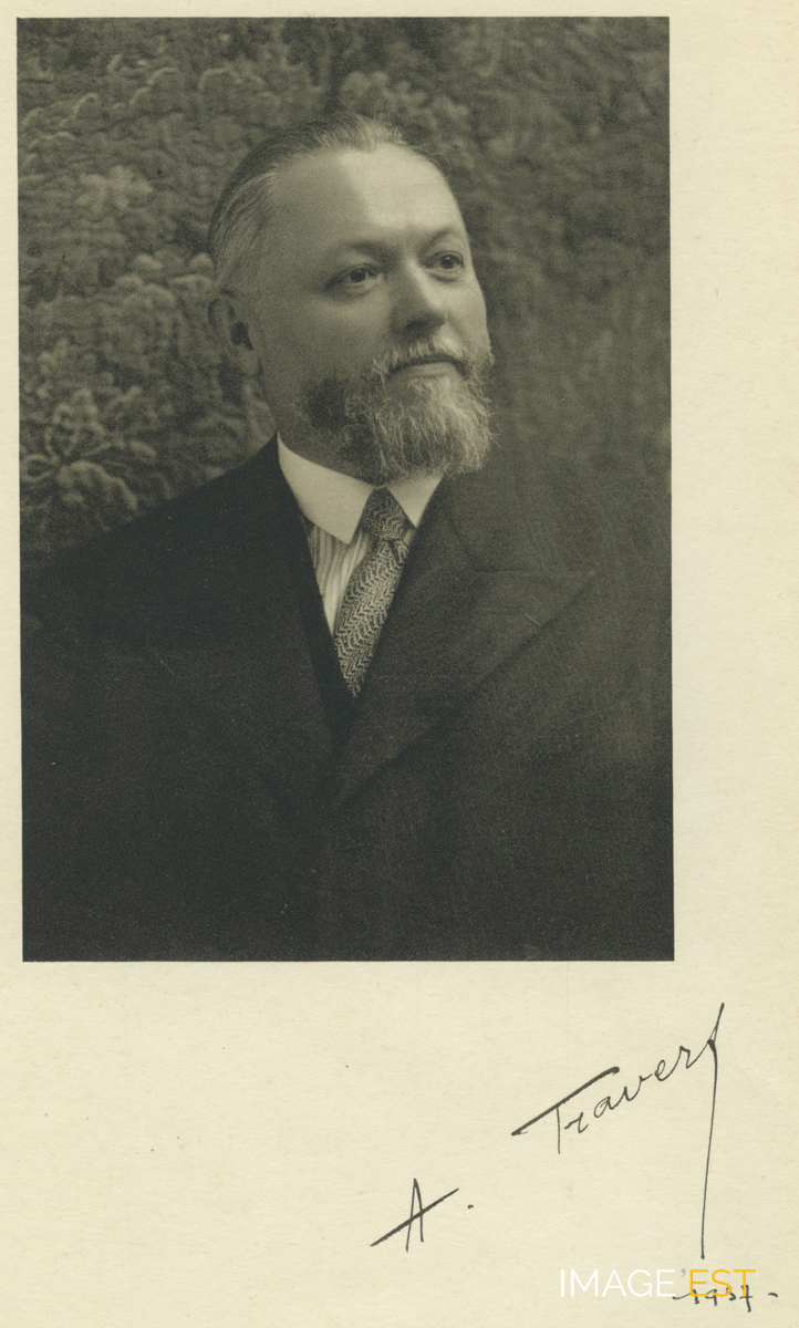 Portrait de Alexandre Travers (1883-1949), professeur à la Faculté des Sciences de Nancy à Nancy (Meurthe-et-Moselle, directeur de l'Institut chimique et fondateur de l'École nationale supérieure des industries chimiques de Nancy (ENSIC) de 1936 à 1942, Chevalier de la Légion d'Honneur (http://cussenot-fst-nancy.ahp-numerique.fr/cussenot2/alphabetique.php?alpha=T)