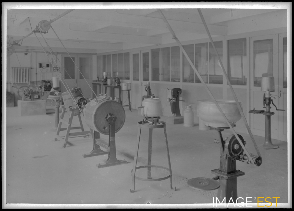 Atelier de conception de poteries et de tonneaux dans une des trois grandes écoles, l'École de brasserie et de malterie de Nancy (1893), l'Institut colonial et agricole de Nancy (1901) ou l'École de laiterie de Nancy (1905) à Nancy (Meurthe-et-Moselle).