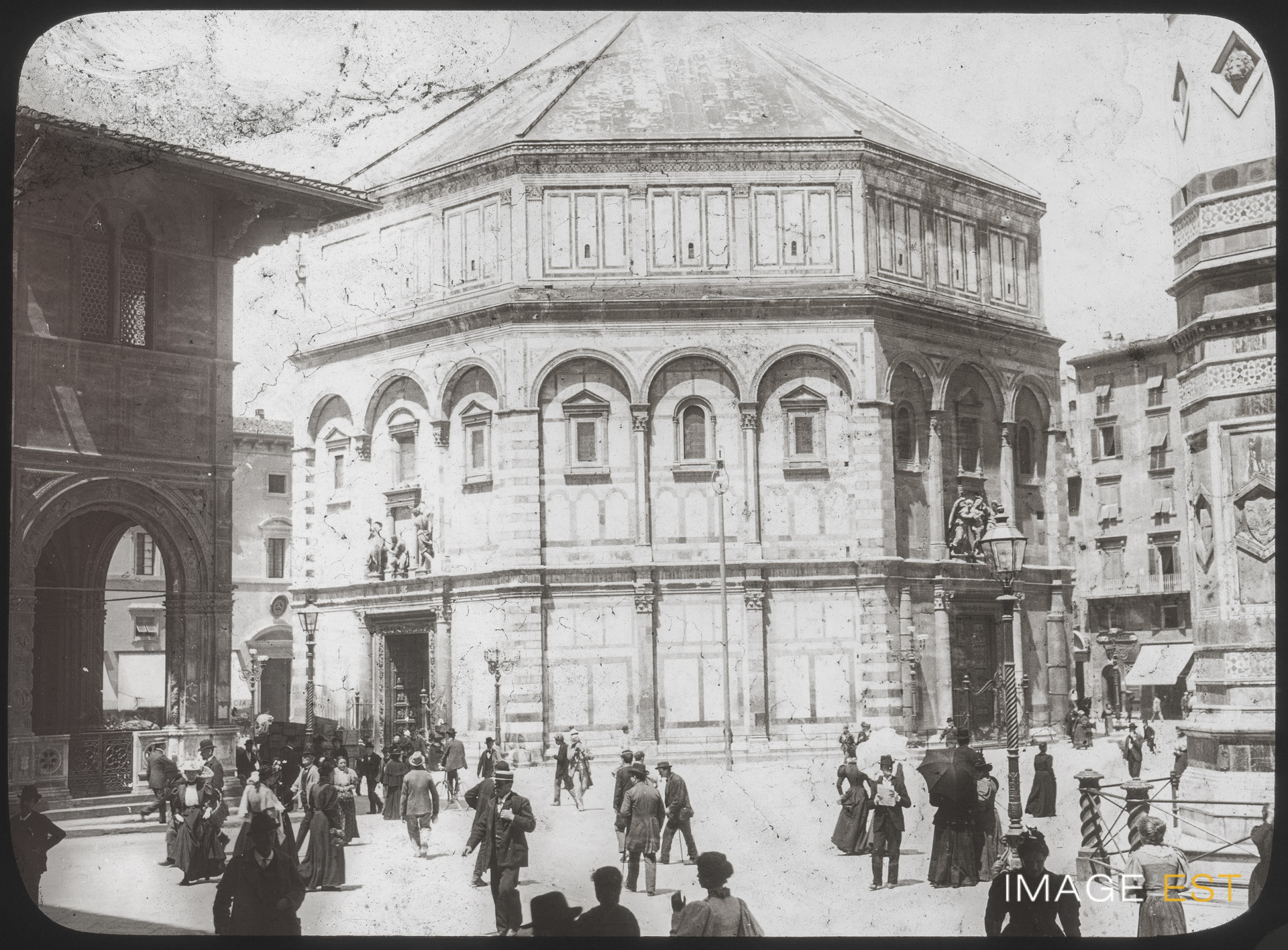Baptistère Saint-Jean à Florence (Italie). Une mention manuscrite en marge de la plaque de verre indique : " Florence. "