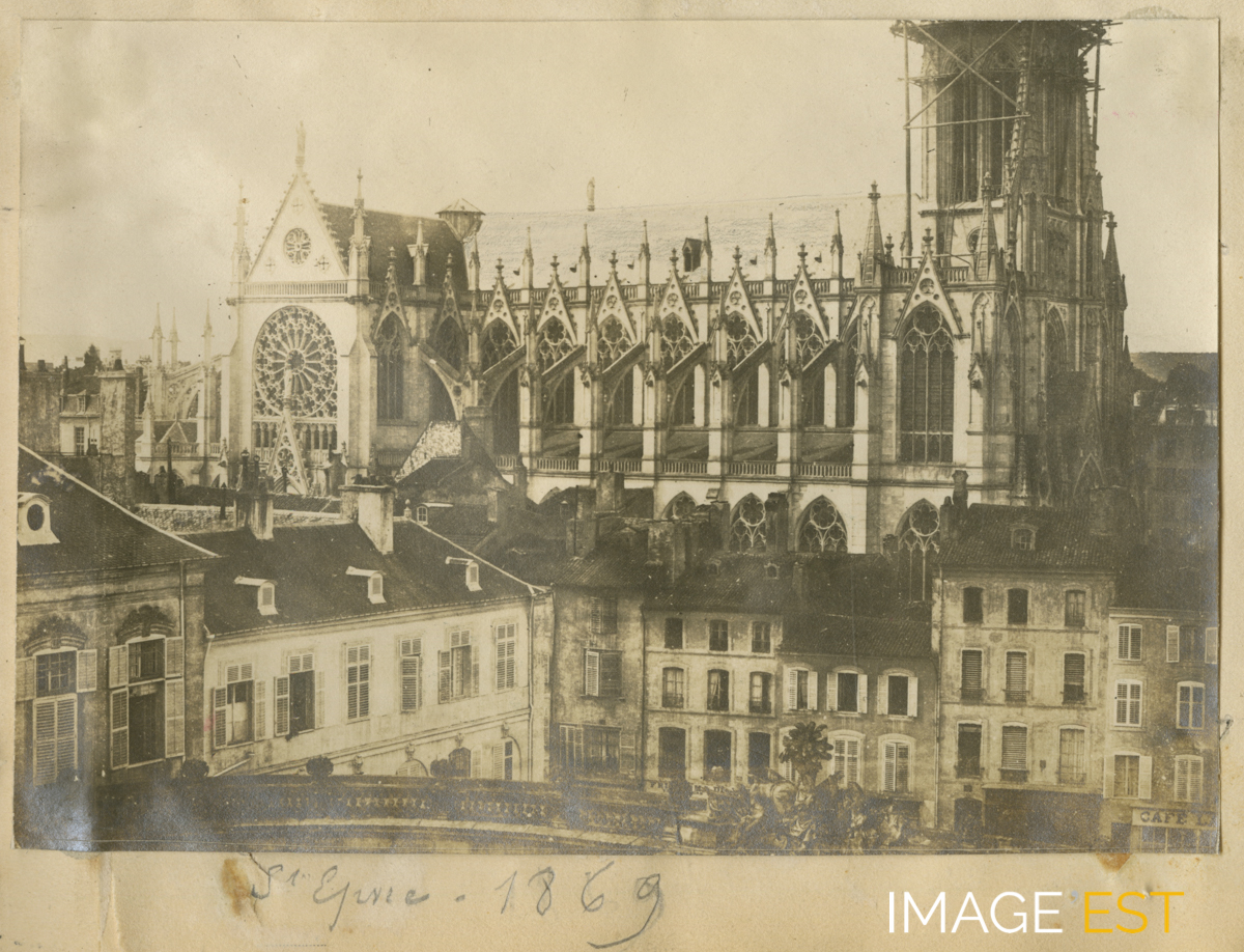 Basilique Saint-Epvre à Nancy (Meurthe-et-Moselle) dont la construction s'est étalée de 1864 à 1875. Une mention manuscrite pen marge du document précise : " St. Epvre - 1869 "