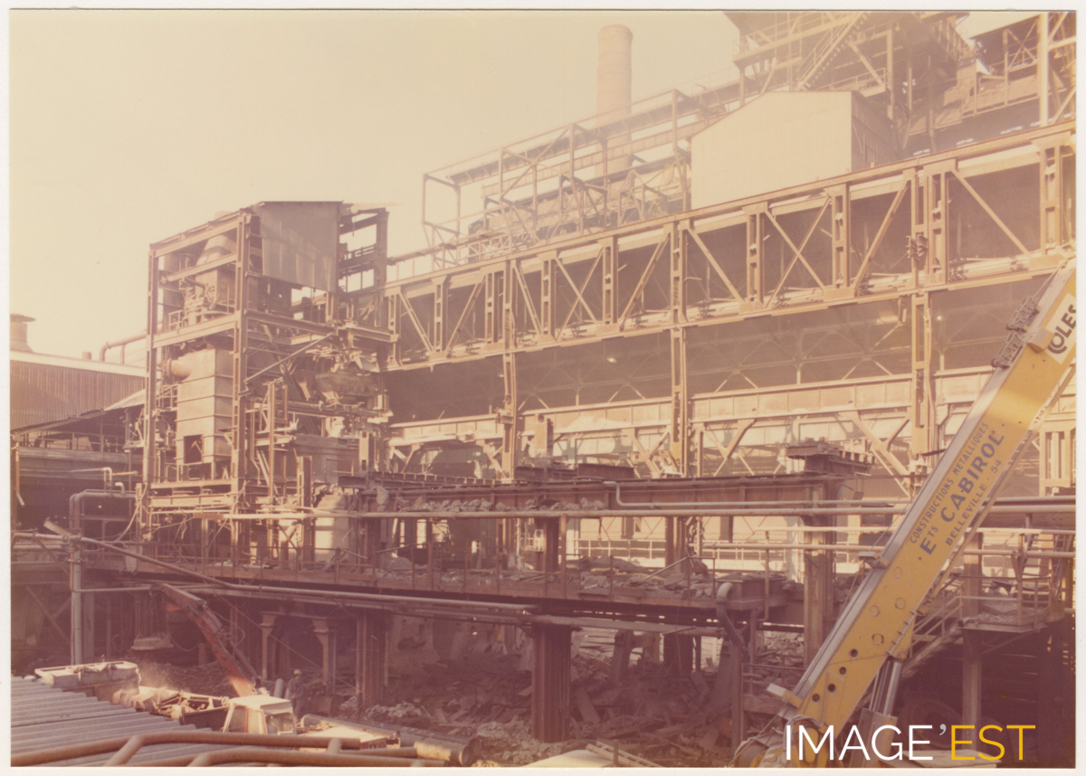 Bâtiment industriel de l'usine de Pont-à-Mousson (Meurthe et Moselle) le 2 février 1974.