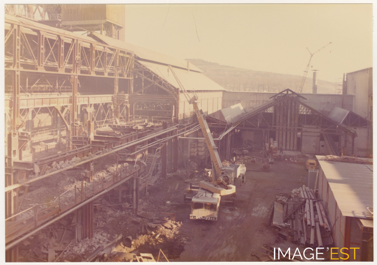 Bâtiment industriel de l'usine de Pont-à-Mousson (Meurthe et Moselle) le 2 février 1974.
