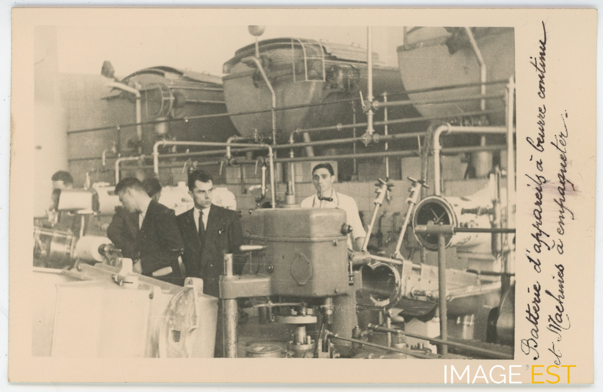 Batterie d'appareils à beurre continu et machine à empaqueter.