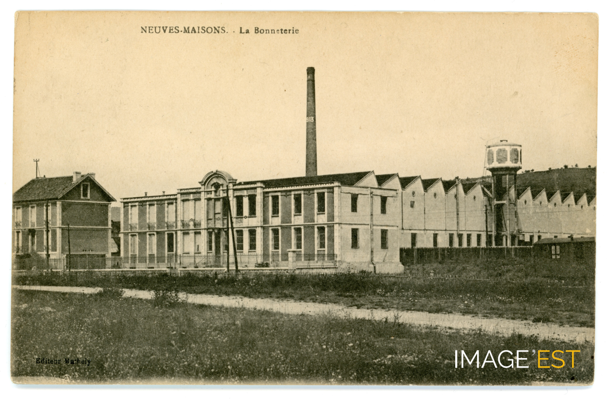 Bonneterie de Chaligny (Meurthe-et-Moselle). À remarquer l'année 1913 figurant sur la partie supérieure de la cheminée.