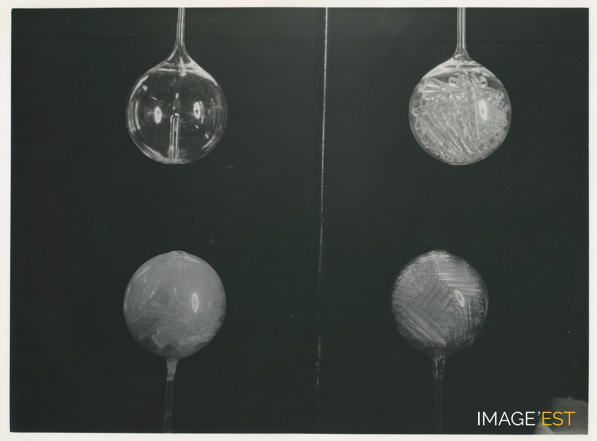 Boules de verre de l'École nationale supérieure des industries chimiques (ENSIC) à Nancy (Meurthe-et-Moselle). Cachet du photographe " Charles André Nancy n° 99-4107 ".