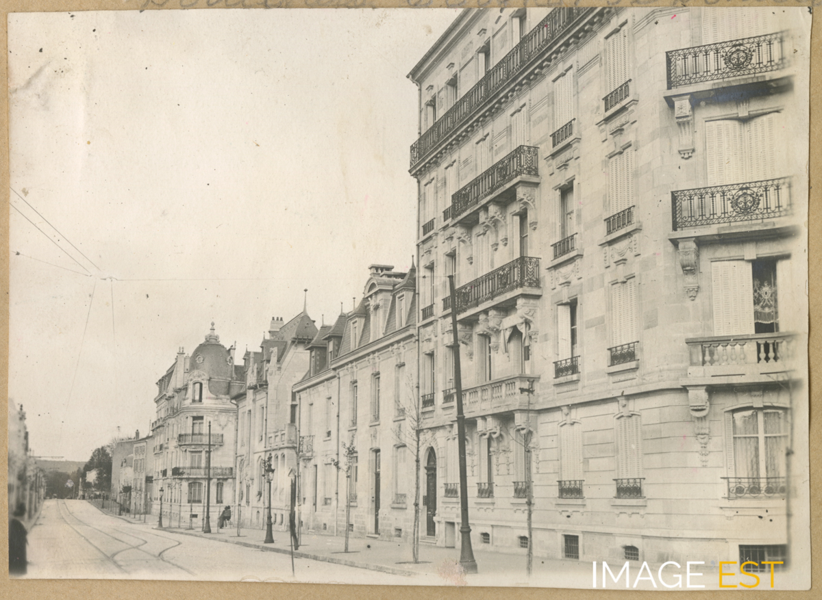 L'actuel boulevard Albert Ier à Nancy (Meurthe-et-Moselle), qui devait a? l'origine s'appeler rue Victor Hugo prolonge?e, est trace? au tout de?but du XXe sie?cle. Le 17 novembre 1908, la nouvelle avenue est officiellement baptise?e par le Conseil Municipal de Nancy, « Boulevard Godefroy de Bouillon ». À cette date la place n'est pas encore nomme?e. Elle portera plus tard seulement le nom qui devait e?tre celui du boulevard. (Source : https://geonancy.wordpress.com/wp-content/uploads/2013/01/historique-quartier-boudonville.pdf)