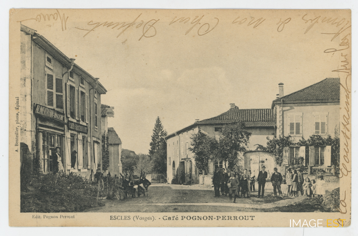 Café-restaurant Pognon-Perrout et épicerie " Alimentation vosgienne " à Escles (Vosges).
