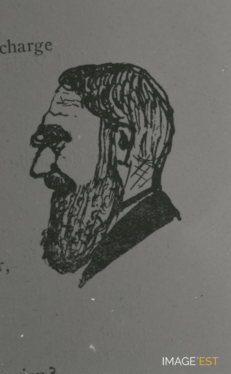 Caricature d'une personnalité non identifiée de l'Institut chimique de Nancy (Meurthe-et-Moselle).