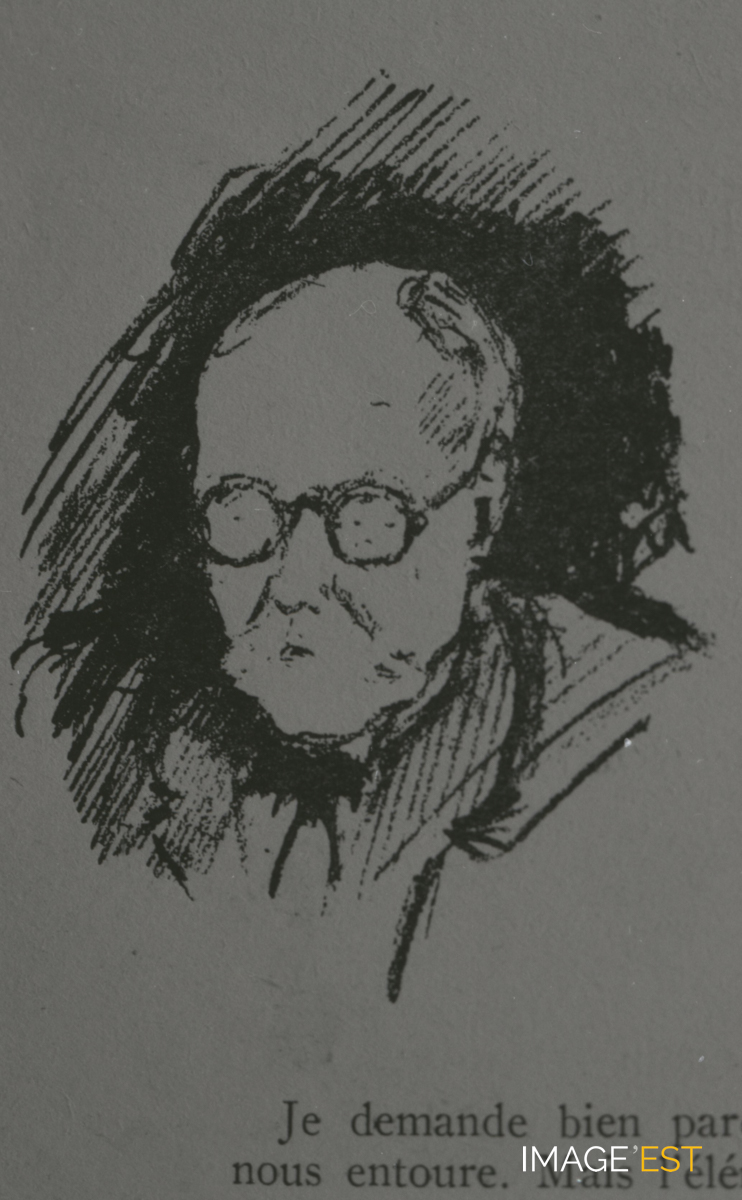 Caricature d'une personnalité non identifiée de l'Institut chimique de Nancy (Meurthe-et-Moselle).