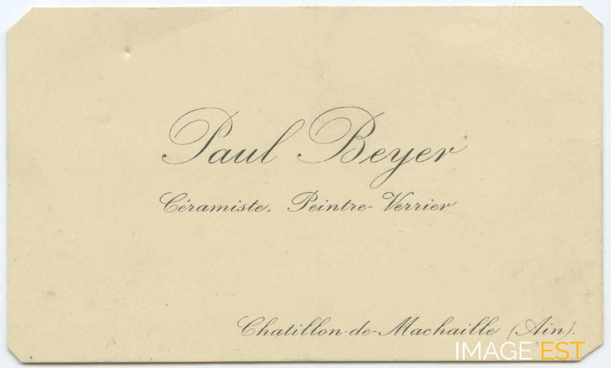 Carte de visite de Paul Beyer (1873-1945), beau-frère de Paul Pattinger, céramiste, peintre-verrier, à Chatillon de Machaille (Ain). Paul Beyer est né le 9 novembre 1873.