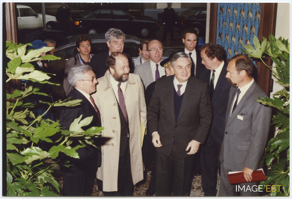 Centenaire de la création de l'Institut chimique de Nancy (1887) rue Grandville à Nancy (Meurthe-et-Moselle) en présence de MM. Rossinot, maire de la ville et Laurent, directeur de l'ENSIC.