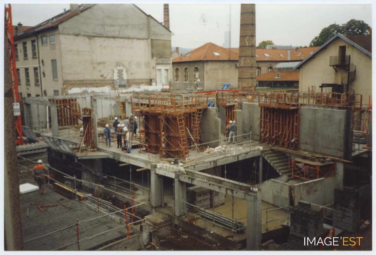 Chantier de construction d'un nouveau bâtiment de l'École nationale supérieure des industries chimiques (ENSIC) à Nancy (Meurthe-et-Moselle) le 8 octobre 1993.