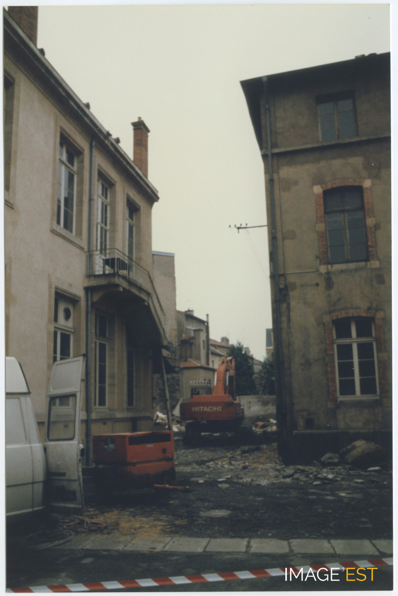 Chantier de démolition de l'ancienne École de brasserie et de malterie de l'École nationale supérieure des industries chimiques (ENSIC) à Nancy (Meurthe-et-Moselle).