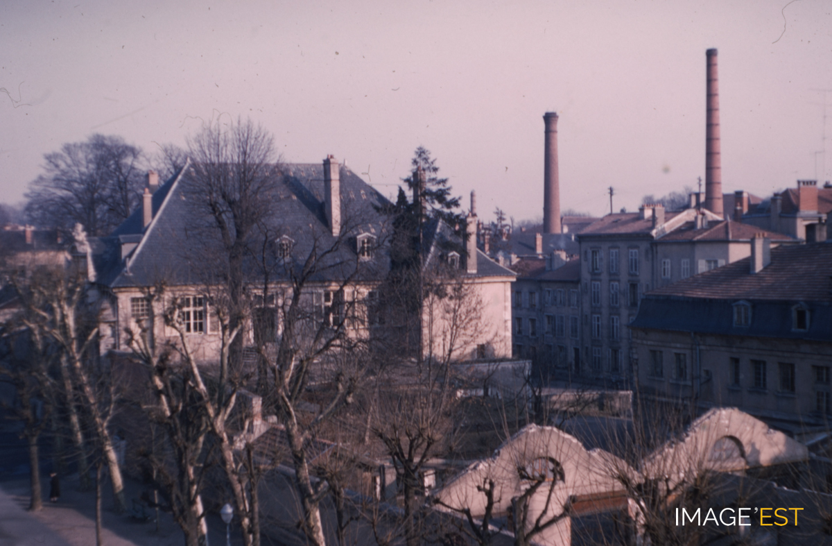 Chantier de destruction de l'ancien manège de la caserne Hugo rue Déglin à Nancy (Meurthe-et-Moselle). Un article de L'Est républicain du 24 février 1959 nous renseigne sur l'histoire de cet établissement. L'ancien manège de l'ex-caserne Hugo avait été désaffecté, puis reversé au domaine civil sur l'initiative du recteur Capelle pour servir de salle d'examens et de bal pour les étudiants. C'est en février 1959 que commençèrent les travaux de démolition pour la construction d'un nouveau bâtiment de l'École nationale supérieure des industries chimiques.