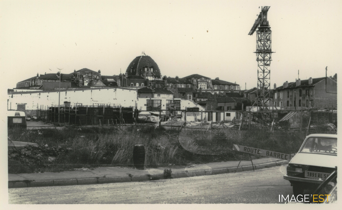 Chantier de destruction de l'ancienne laiterie Saint-Hubert à Nancy (Meurthe-et-Moselle).