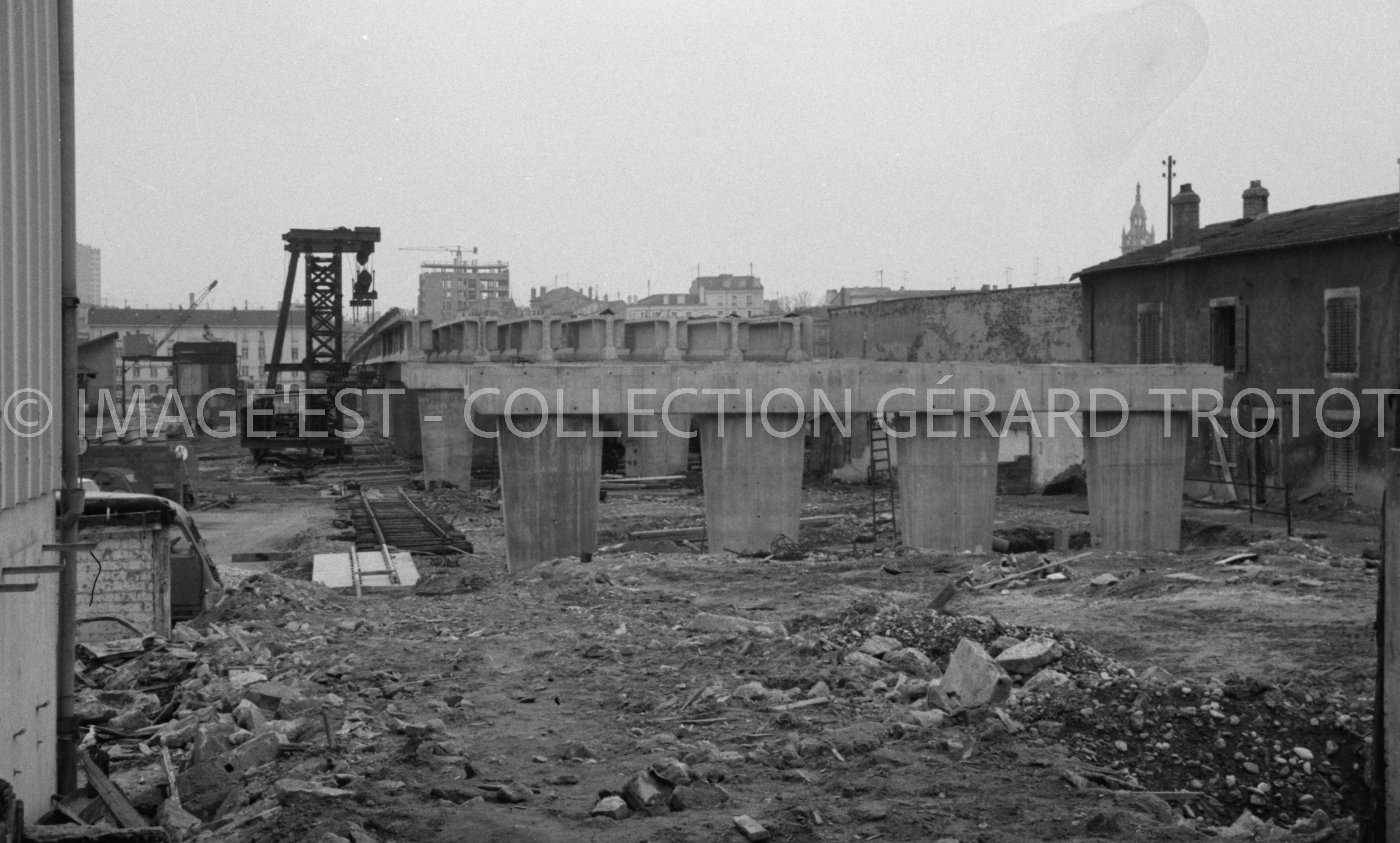 Chantier de construction du viaduc Kennedy à Nancy (Meurthe-et-Moselle).