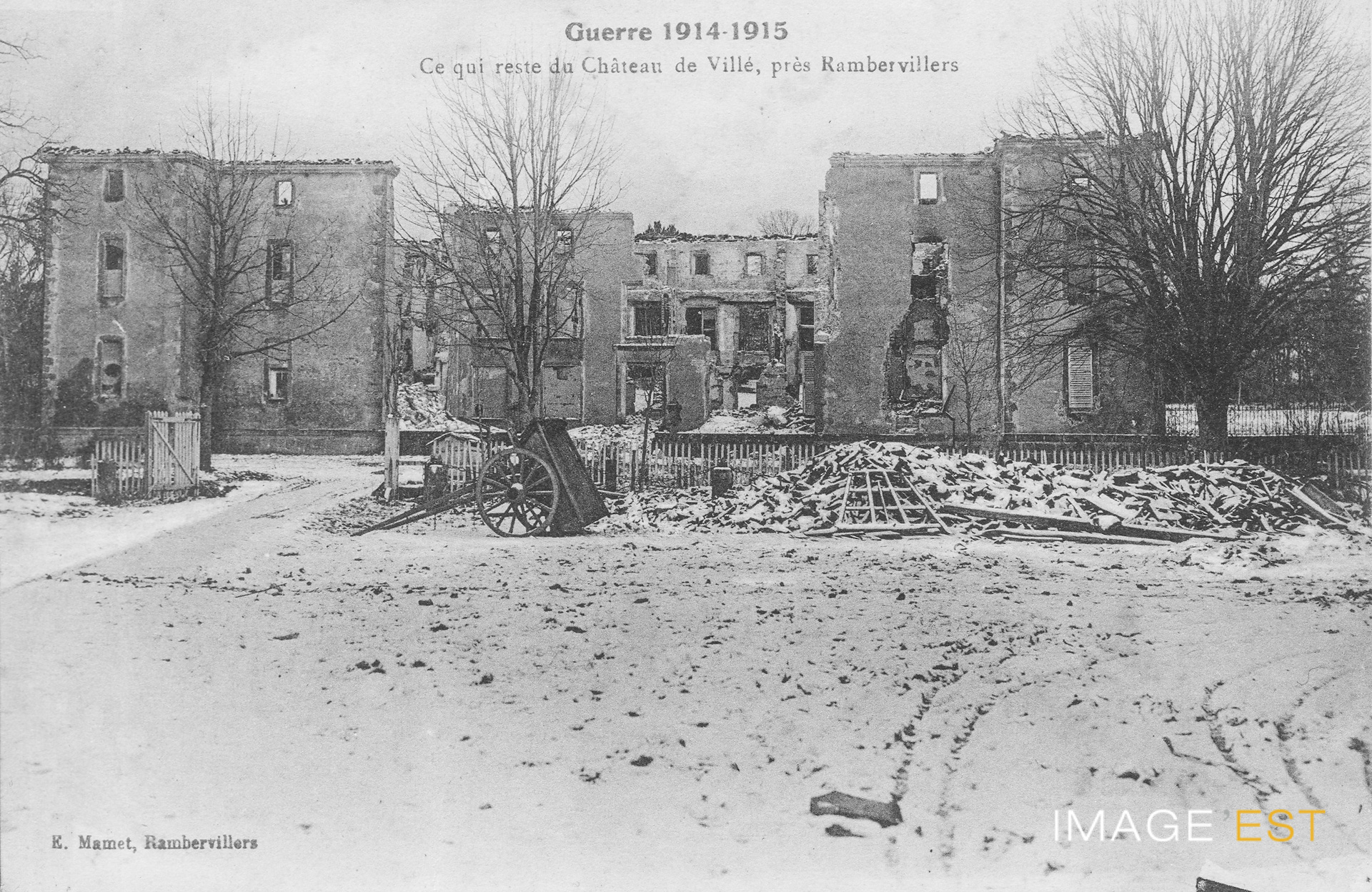 Ruines du Château de Villé à Nossoncourt (Vosges) où se trouvaient le prince de Bavire et l'Etat major allemand. Ils en furent chassés par l'artillerie française qui bombarda le château.