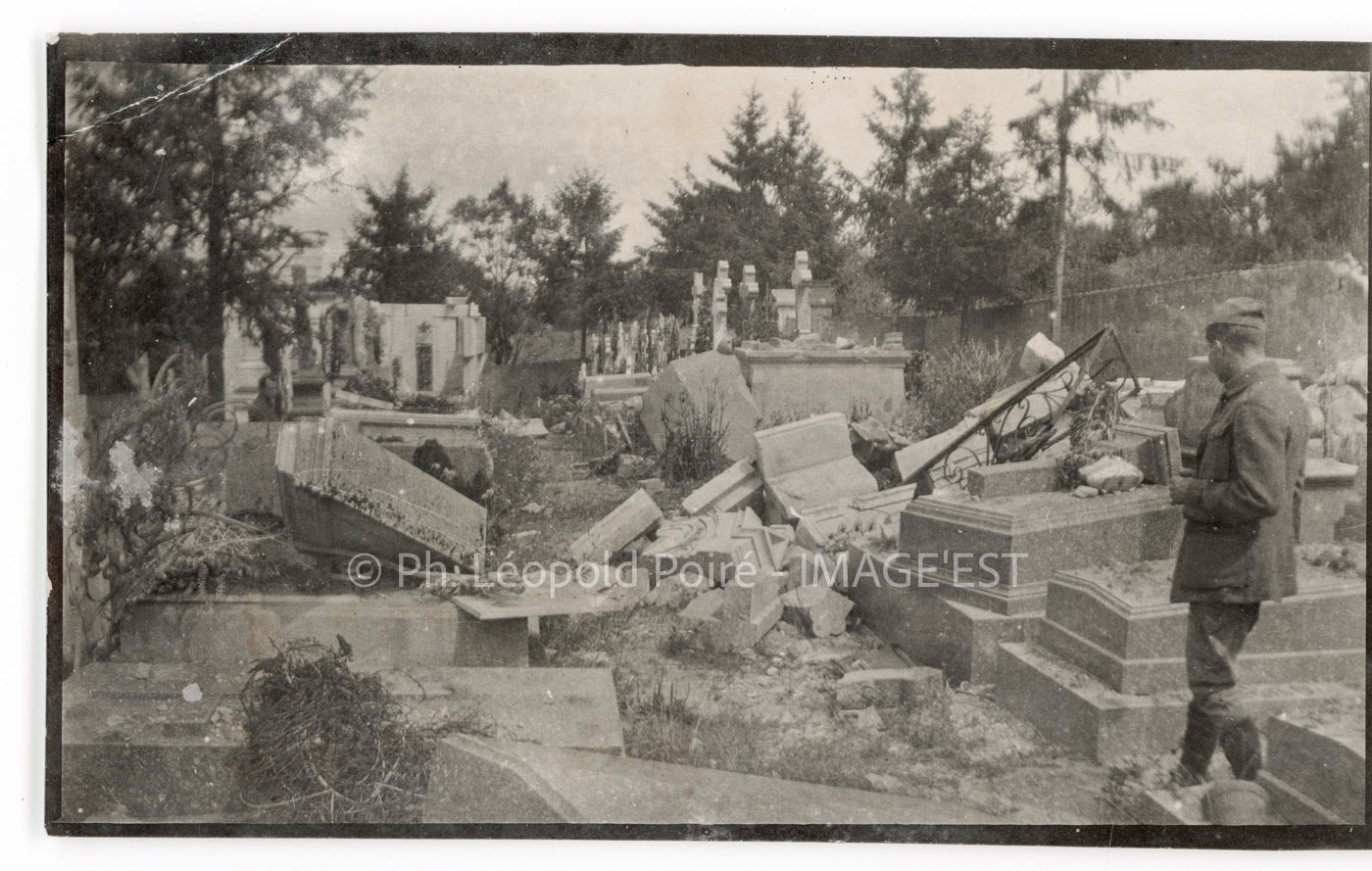 Cimetière dévasté par des bombardements au cours de la Première Guerre mondiale.