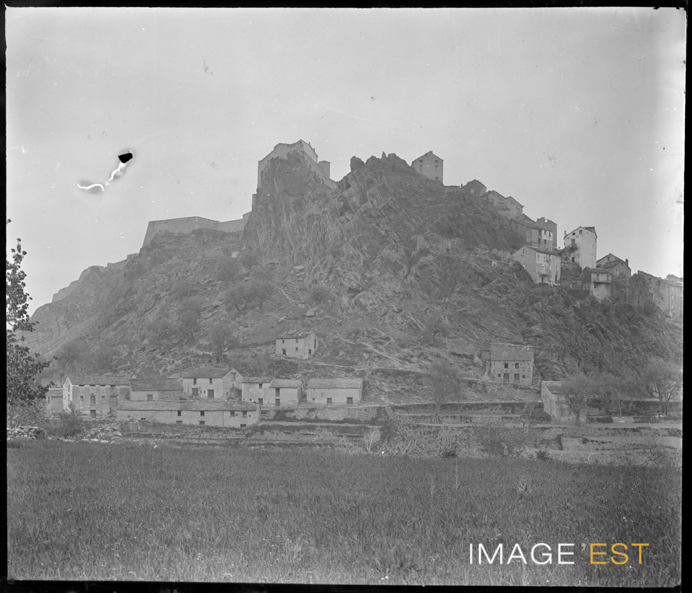 Panorama de la citadelle et de la vieille ville à Corte (Haute-Corse).