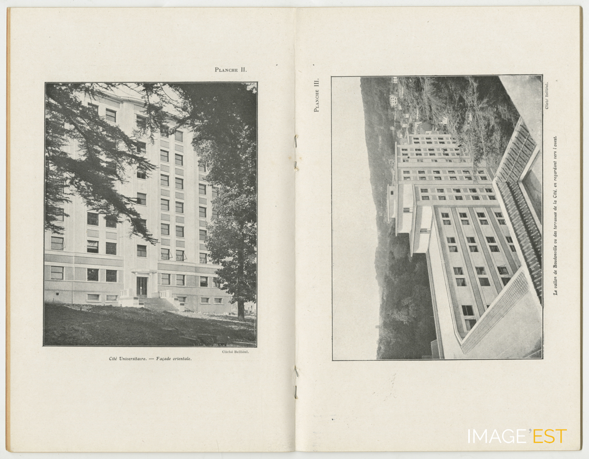 Illustrations extraites d'un livret de présentation de la Cité universitaire de Monbois 2, rue Ludovic Beauchet à Nancy (Meurthe-et-Moselle) par Charles Bruneau. Ces deux clichés (planches II et III) ont été pris par la Maison Bellieni.