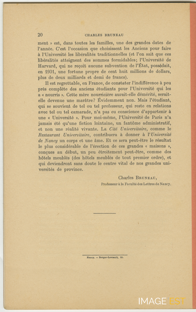Texte extrait d'un livret de présentation de la Cité universitaire de Monbois 2, rue Ludovic Beauchet à Nancy (Meurthe-et-Moselle) par Charles Bruneau.