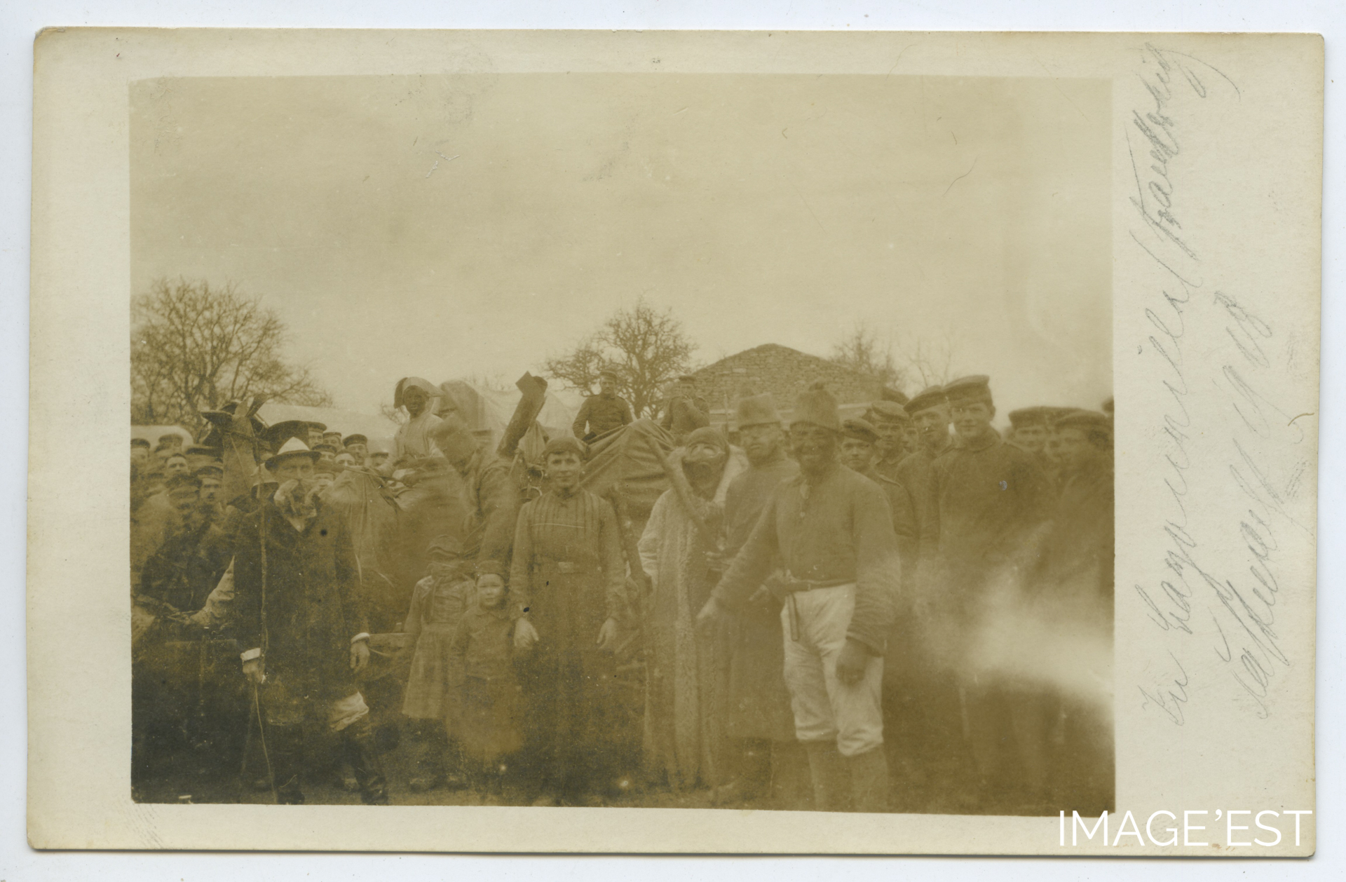 Civils et soldats allemands à Bayonville-sur-Mad (Meurthe-et-Moselle) en 1918.