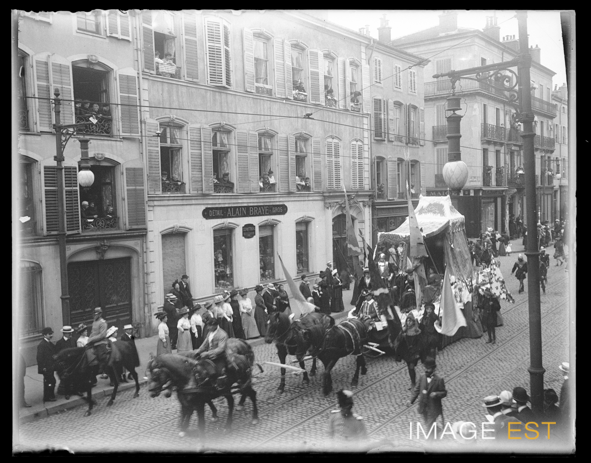 Cortège historique rue Saint-Dizier à Nancy (Meurthe-et-Moselle).
