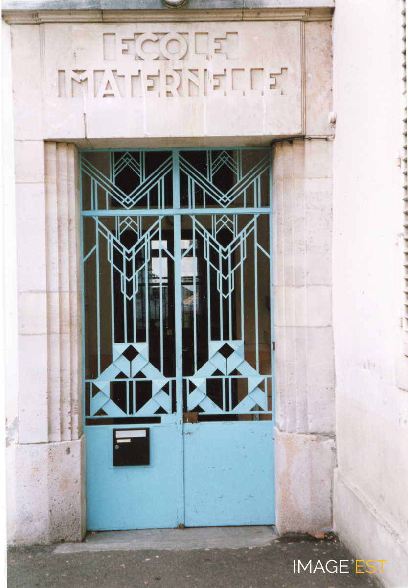 Porte d'entrée style Art déco de l'école maternelle Vautrin à Maxéville (Meurthe-et-Moselle).