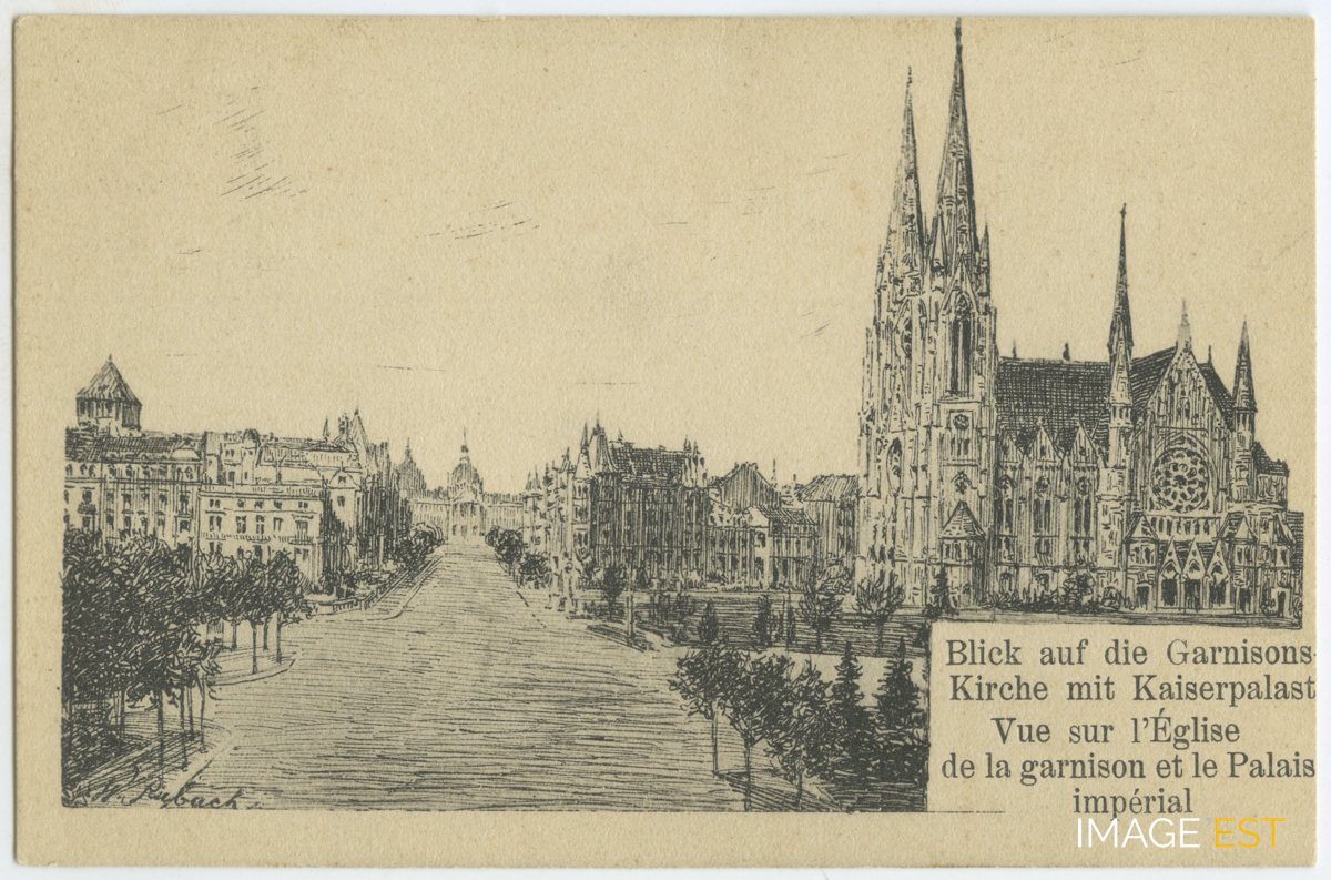Église de la garnison et palais impérial à Strasbourg (Bas-Rhin).
