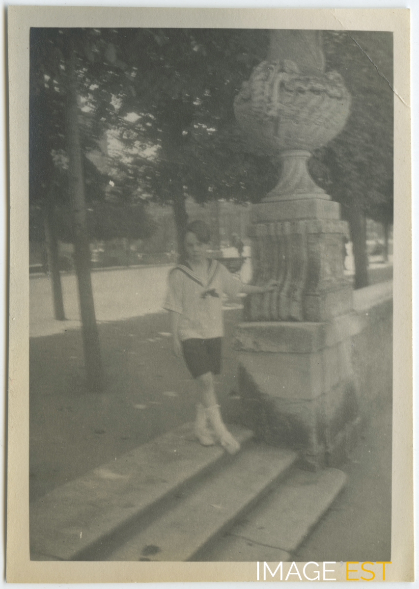 Enfant posant debout place de la Carrière à Nancy (Meurthe-et-Moselle).
