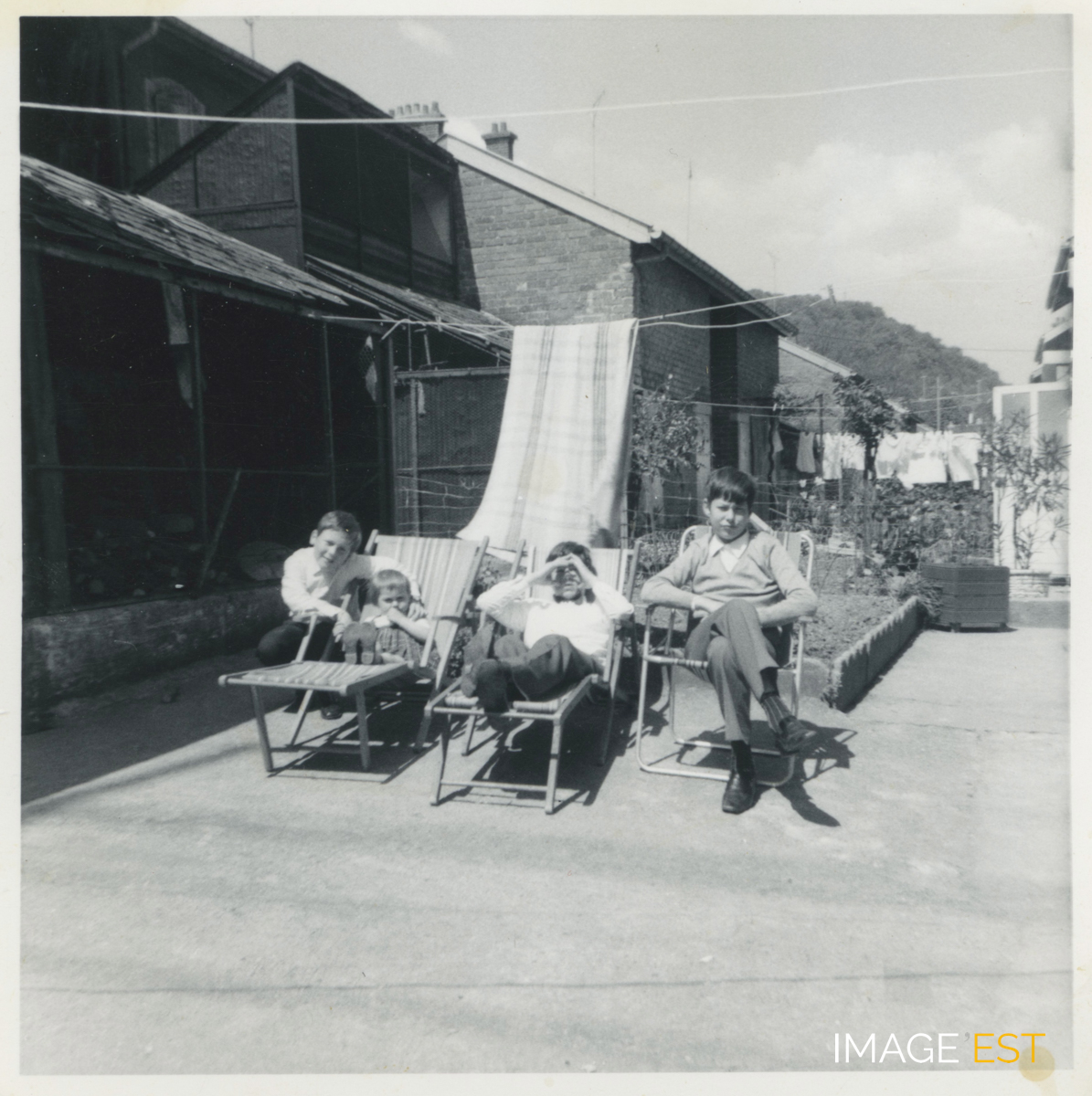 Enfants de la famille Vogt dans la cour d'une cité Solvay à Maxéville (Meurthe-et-Moselle).