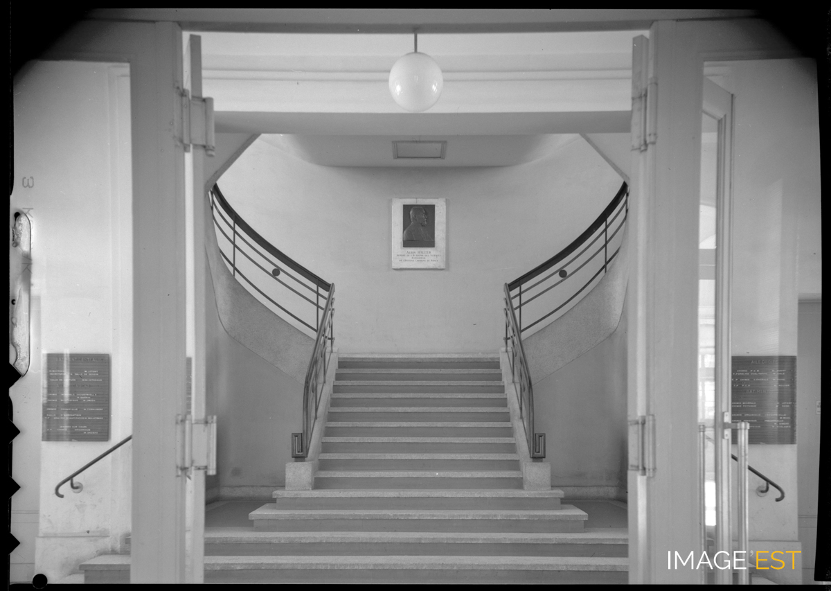 Escalier d'honneur de l'École nationale supérieure des industries chimiques (ENSIC) à Nancy (Meurthe-et-Moselle). À l'arrière-plan, le portrait de Albin Haller, membre de l'Académie des Sciences et fondateur de l'Institut chimique de Nancy.