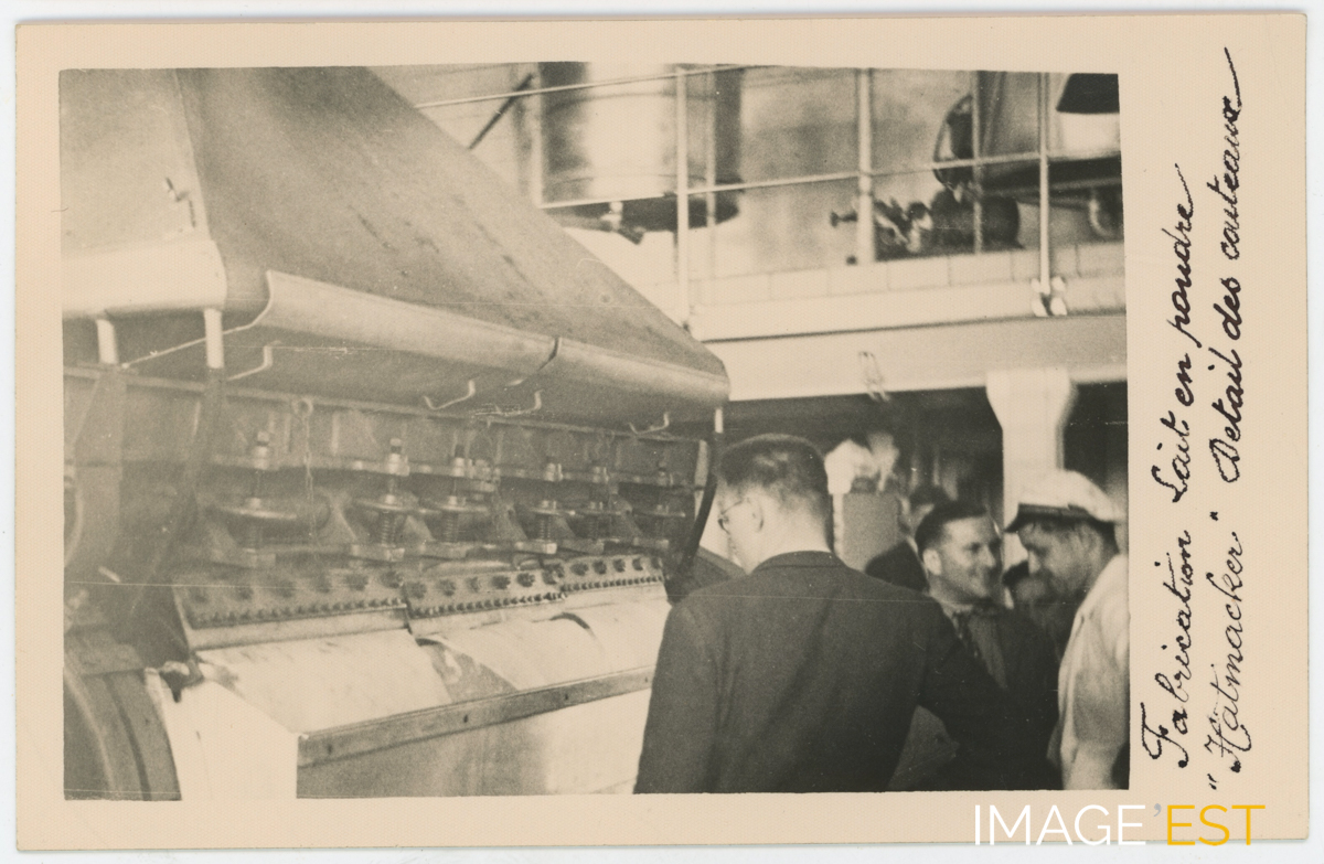 Fabrication du lait en poudre "Hatmacker " (détail des couteaux) au sein des établissements Claudel.
