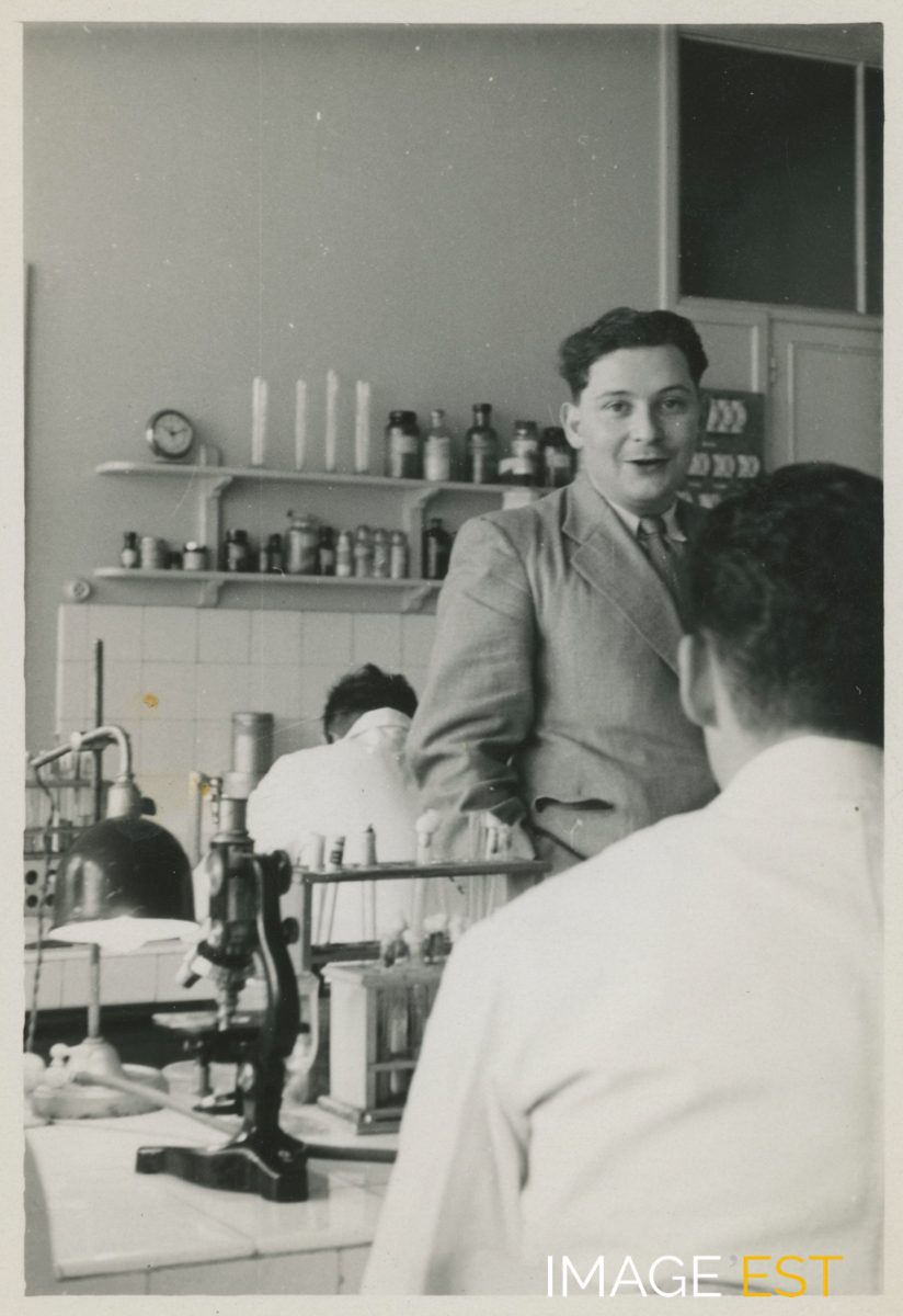 Étudiants de l'Ensaia (École nationale supérieure d'agronomie et des industries alimentaires) en travaux pratiques dans une salle d'un bâtiment de la rue Sainte-Catherine à Nancy (Meurthe-et-Moselle).