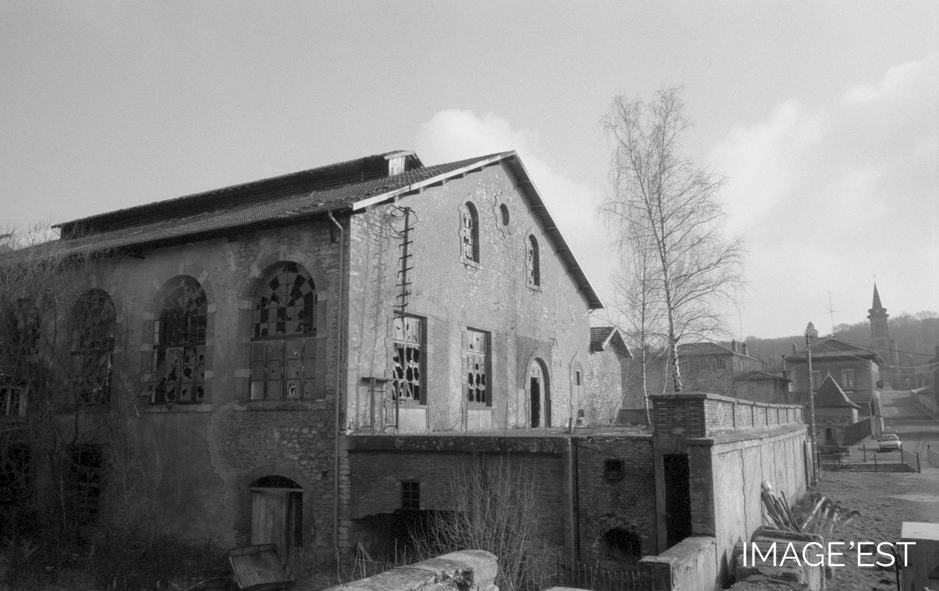 Façade ouest de l'ancienne halle de la cristallerie de Portieux (Vosges).
