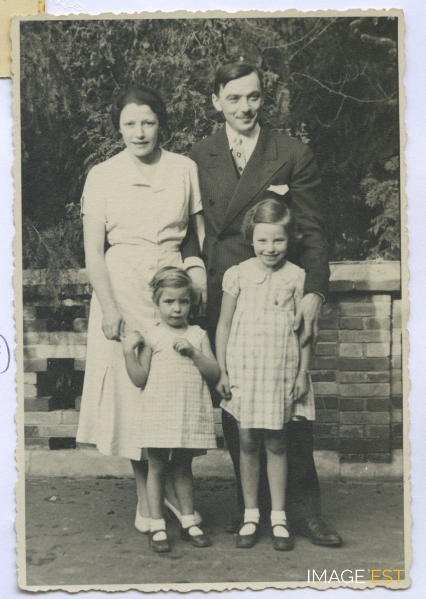 Jean Moreau (1901-1982), son épouse Geneviève et ses filles, Marie-Claude et Michèle, sur le perron de la maison familiale à Vézelise (Meurthe-et-Moselle). (Source : Archives privées des familles Kalis-Moreau).