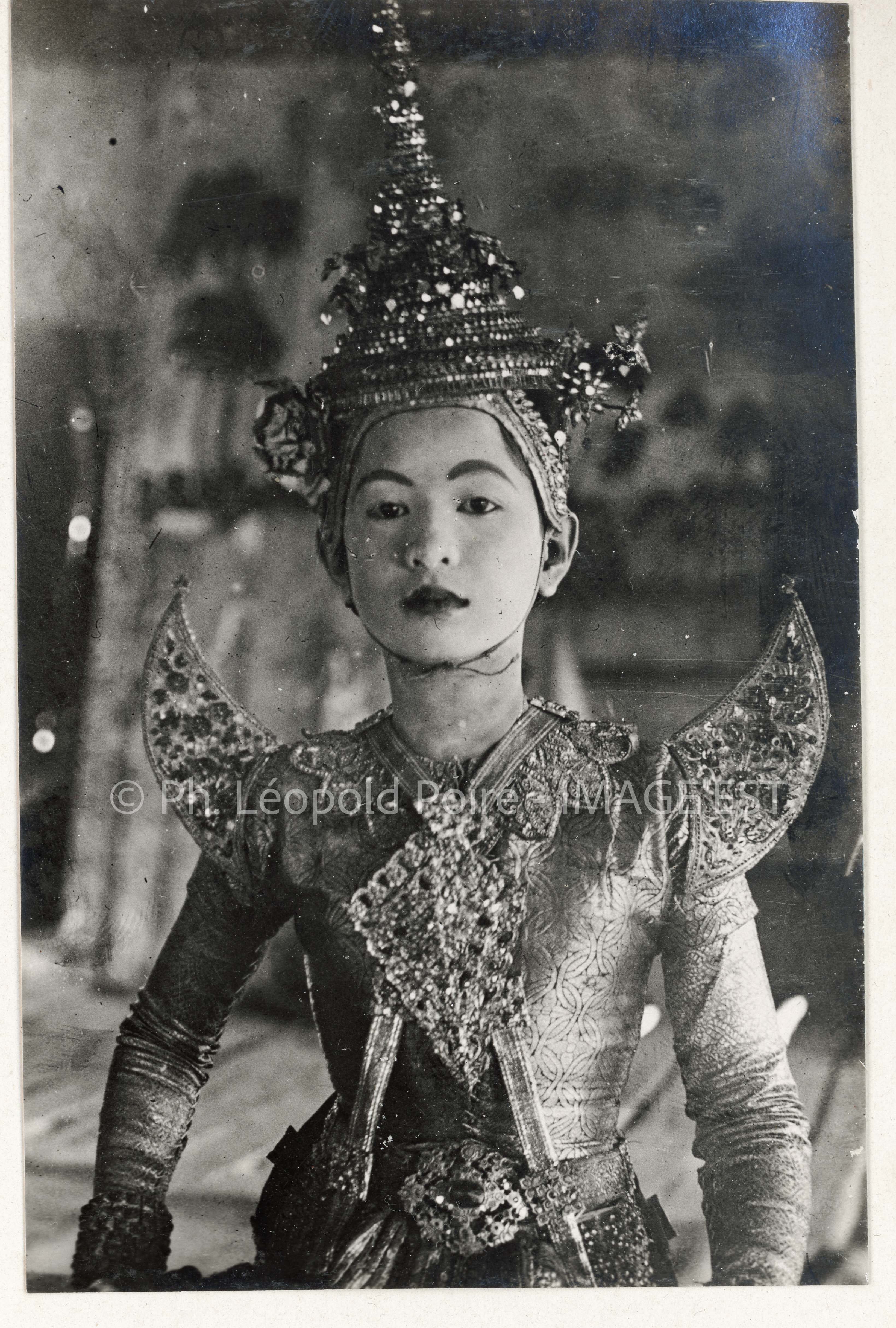 Femme déguisée lors d'un spectacle à Saïgon (Vietnam).
