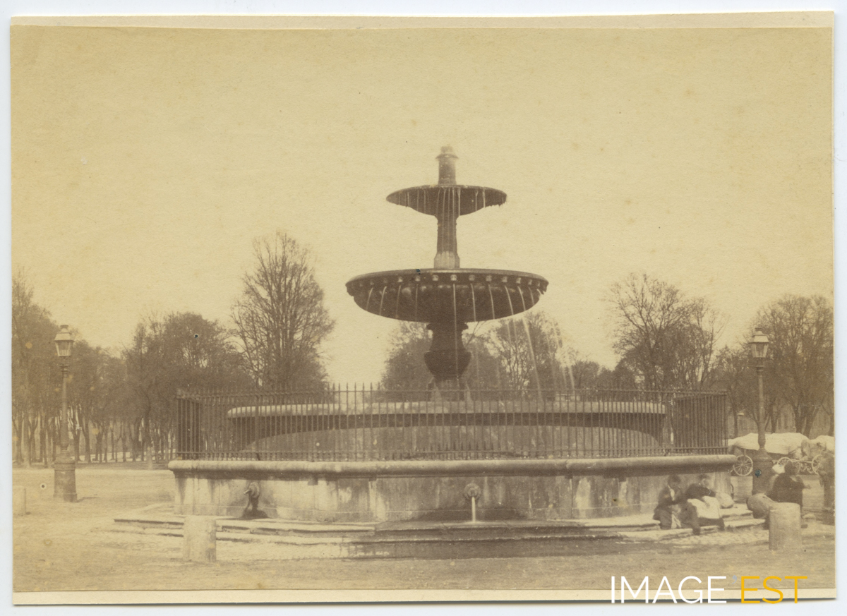 Fontaine de la place Carnot à Nancy (Meurthe-et-Moselle). Une mention manuscrite précise : " Ancienne fontaine du château d'eau sur la place de l'Académie ".