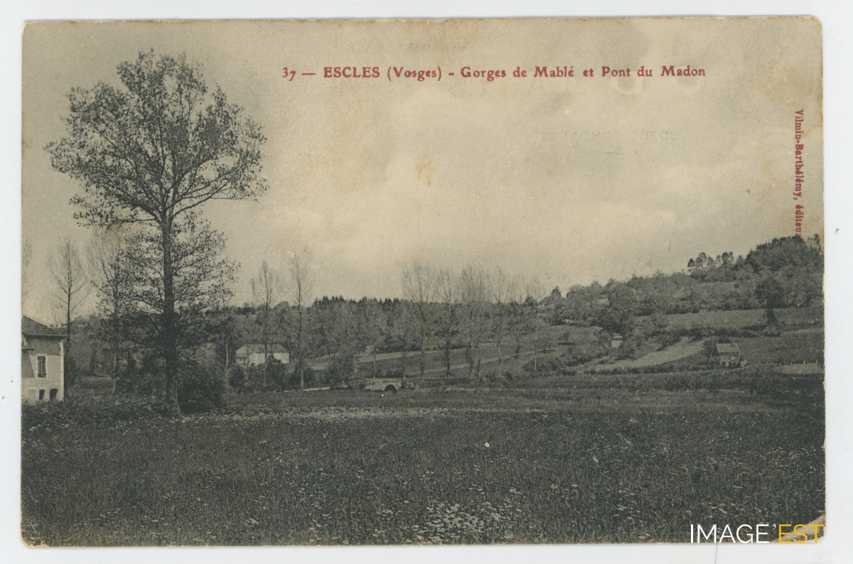 Gorges de Mablé et pont sur le Madon à Escles (Vosges).
