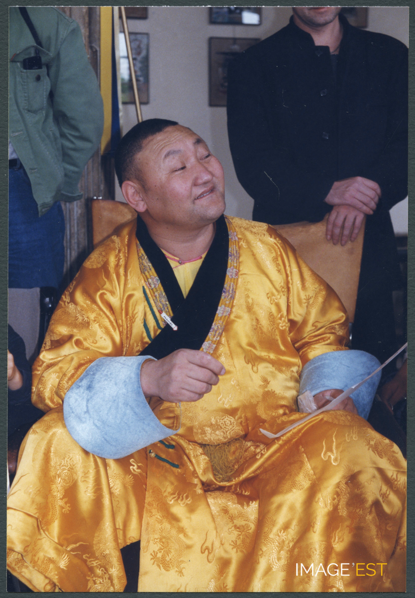 Grand lama Amgalam, invité à l'abbaye des Prémontrés à Pont-à-Mousson (Meurthe-et-Moselle) en mai 1999, à l'occasion d'une rencontre avec les enfants du cours préparatoire de l'école Chateaubriand de Heillecourt et les moines mongols du monastère Gandan d'Oulan-Bator (capitale de la Mongolie).