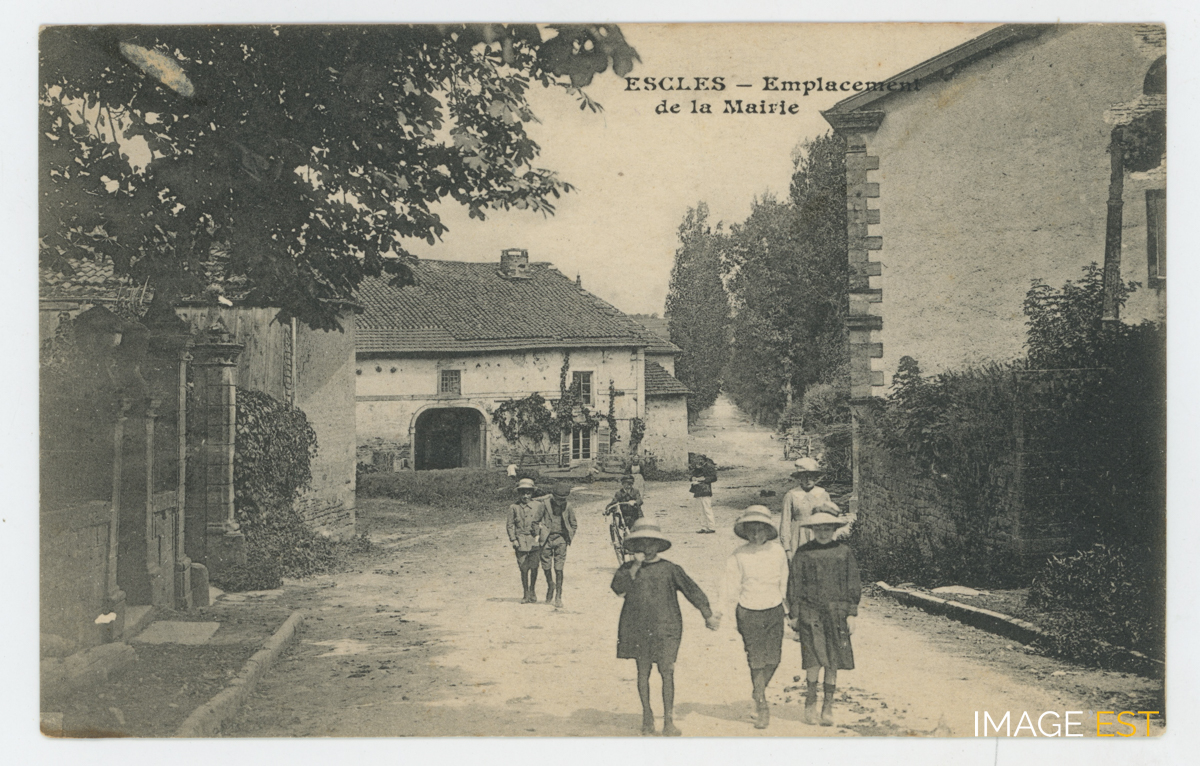 Groupe d'enfants marchant à proximité de la mairie d'Escles (Vosges).
