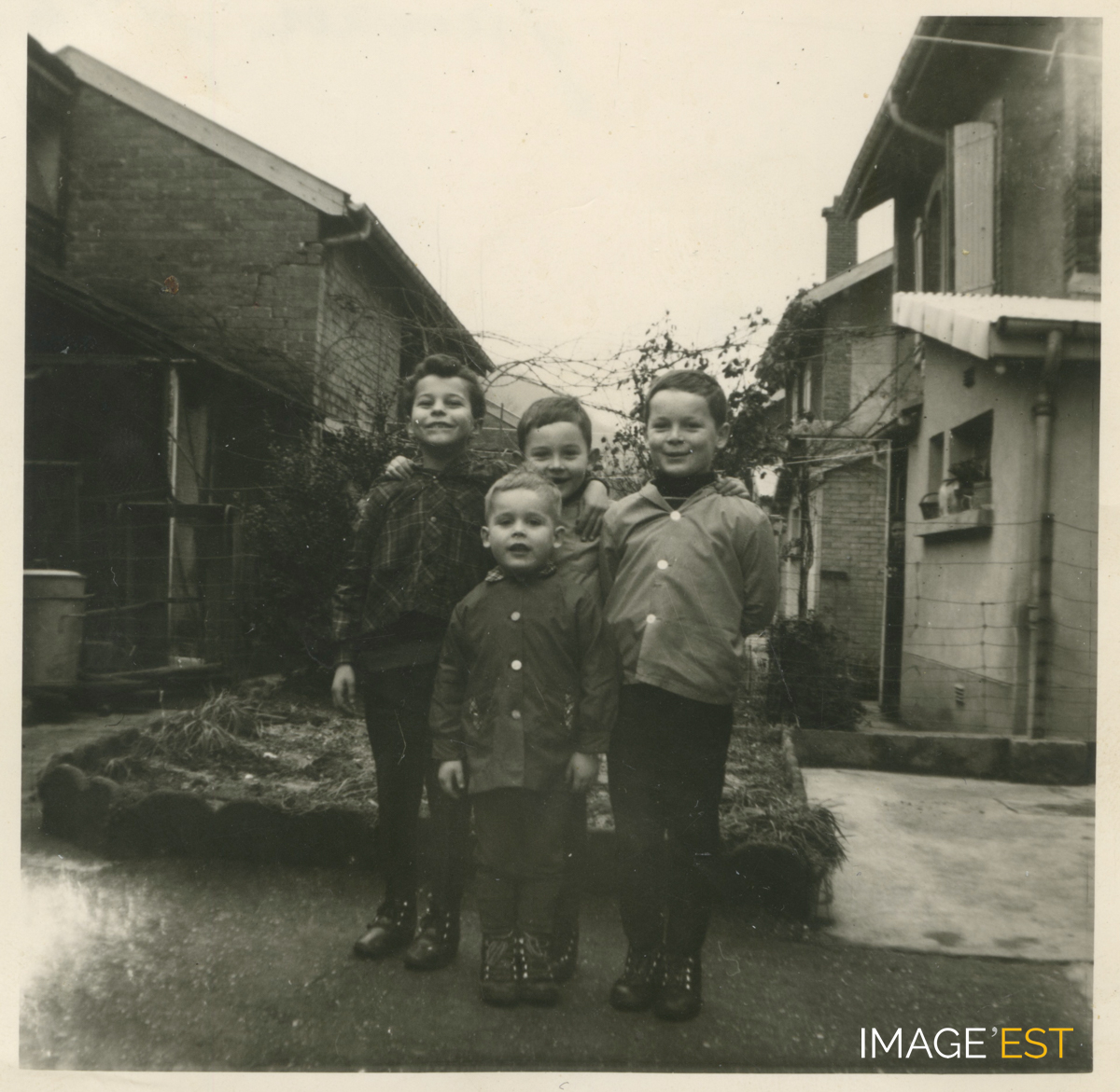 Bruno Flachat, Daniel, Pascal et Denis Vogt à la cité Solvay à Maxéville (Meurthe-et-Moselle).