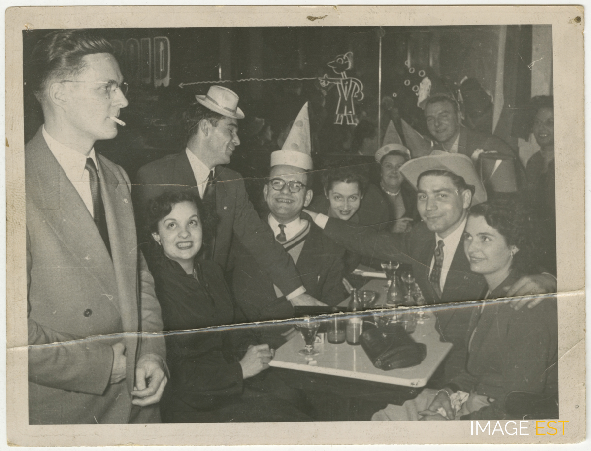 Groupe d'étudiants et d'étudiantes de l'ENSIC (École nationale supérieure des industries chimiques) probablement lors d'une fête à Nancy (Meurthe-et-Moselle).
