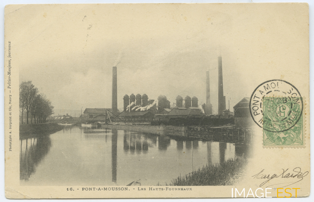 Hauts fourneaux de l'usine de Pont-à-Mousson (Meurthe et Moselle).