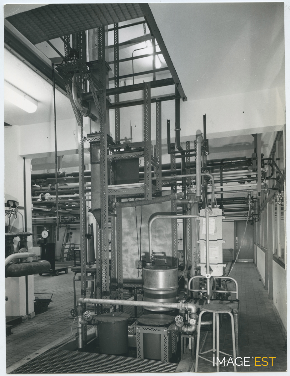 Installations techniques de l'École nationale supérieure des industries chimiques (ENSIC) à Nancy (Meurthe-et-Moselle). Cachet du photographe " Charles André Nancy n° 32 2951 ". Une mention manuscrite au dos précise : " Prof. Hérold ".