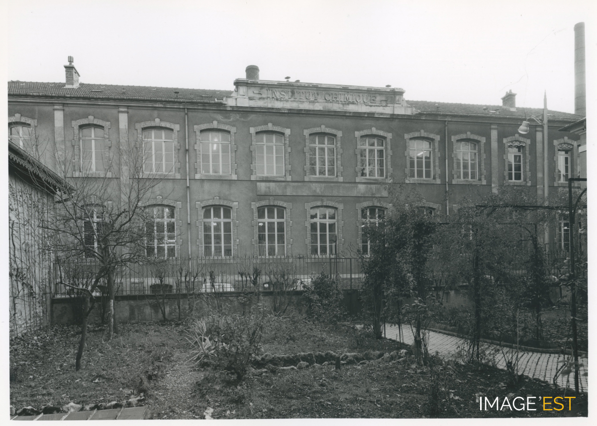 Jardin et cour intérieure de l'ancien Institut chimique à Nancy (Meurthe-et-Moselle).