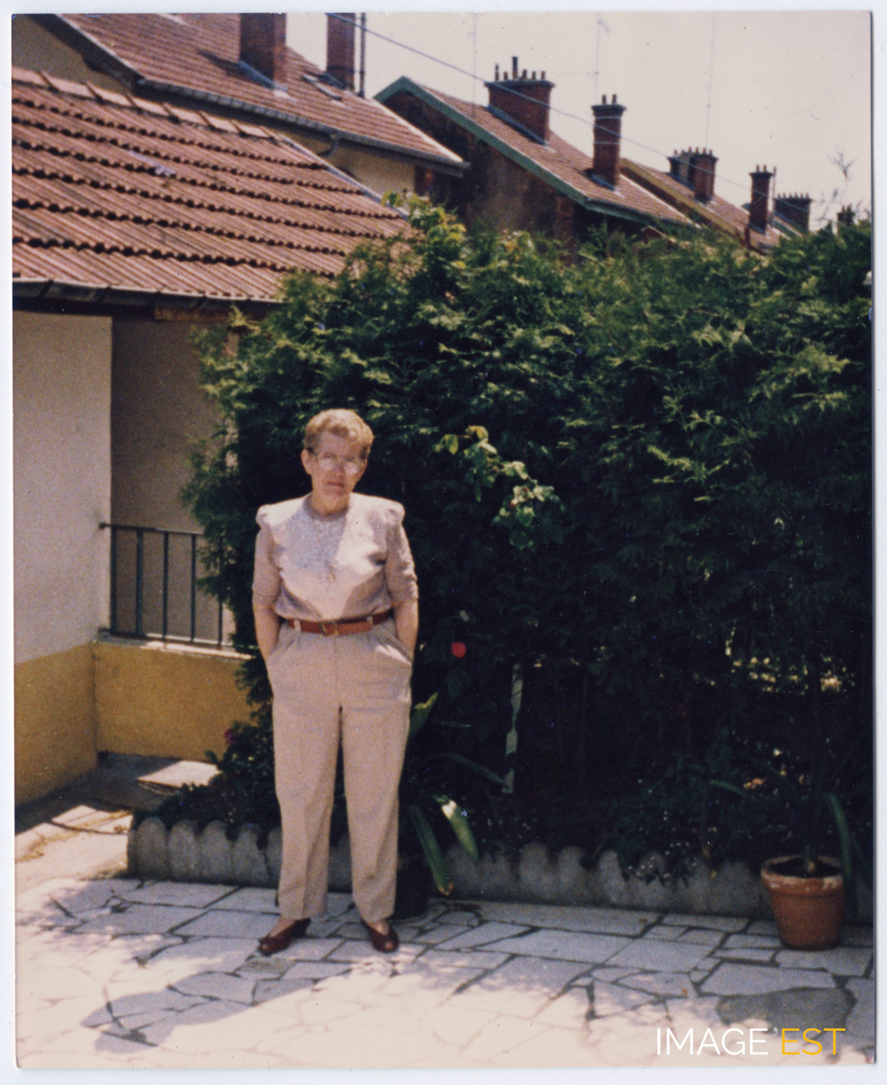 Jacqueline Gaspard dans la cour arrière au 28, rue Pasteur aux cités Solvay à Maxéville (Meurthe-et-Moselle).