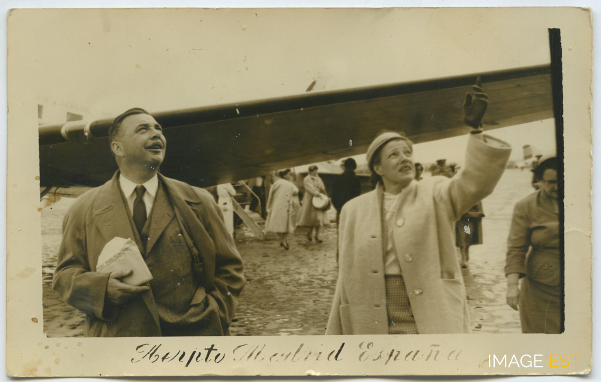 Jean et Geneviève Moreau à l'aéroport à Madrid (Espagne). (Source : Archives privées des familles Kalis-Moreau).